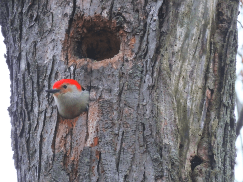 Meanwhile, over by the river, our little buddy, Chet, was still hangin’ in his duplex. I could hear plenty of other Red-Bellied Woodpeckers calling away, but he’s just biding his time, I guess.