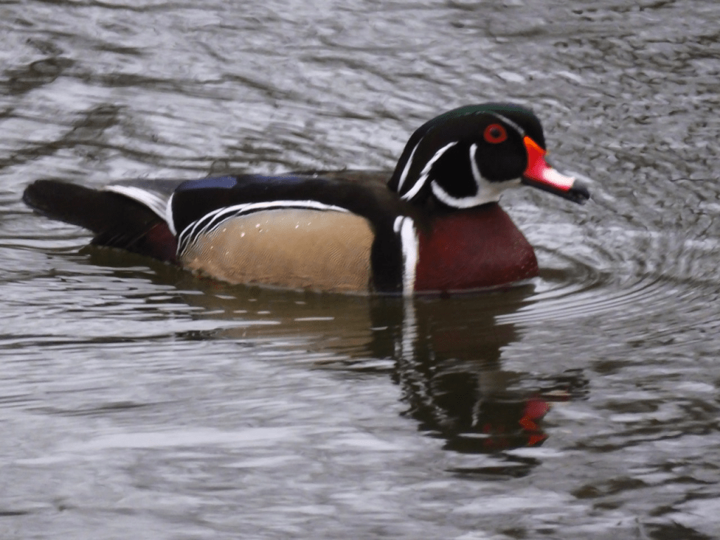 There are now two male and two female Wood ducks that kept themselves busy swimming and flying laps on and over the pond.