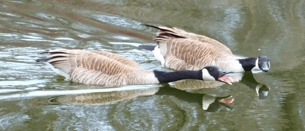 But, meh. You’ve seen pictures of seagulls before, so here’s one from yesterday afternoon when both geese were off the nest again and having an extended and animated conversation about something. At least I saw the operation from the start and there was no obvious instigating event. It just seemed that the one on the nest decided it was a good time to take a break. I still couldn’t see eggs in the nest, but I have a hope they are really there and just too low for me to see.