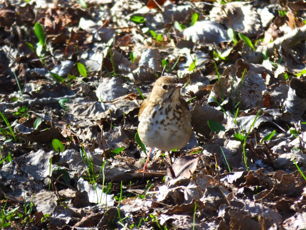 The new finds for today are a hermit thrush foraging,