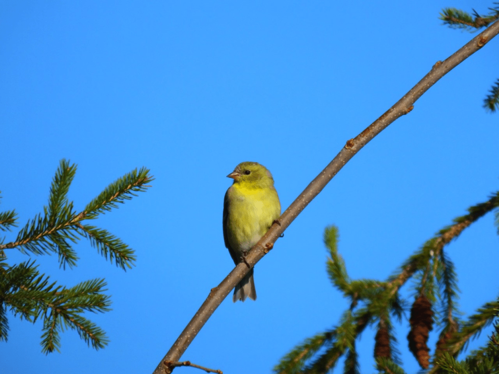 a female american goldfinch posing,