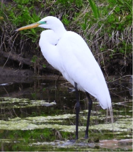 Cth is most likely a great white heron, technically a white variant of the great blue heron, even though they are suppose to be “very rare outside central and southern Florida”. Nevertheless, after reading “How to Identify White Herons“, an excerpt from “Better Birding”, and examining this image closely, I am convinced it is not any of the other possible white wading birds.