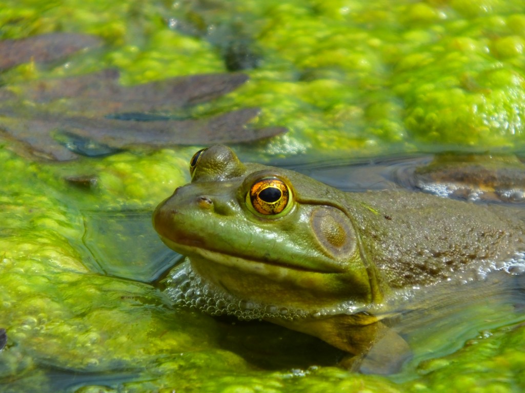 That’s an outstanding specimen of American Bullfrog, and he was 1 of 3 all within a few feet of each other, perhaps in their own little chorus.