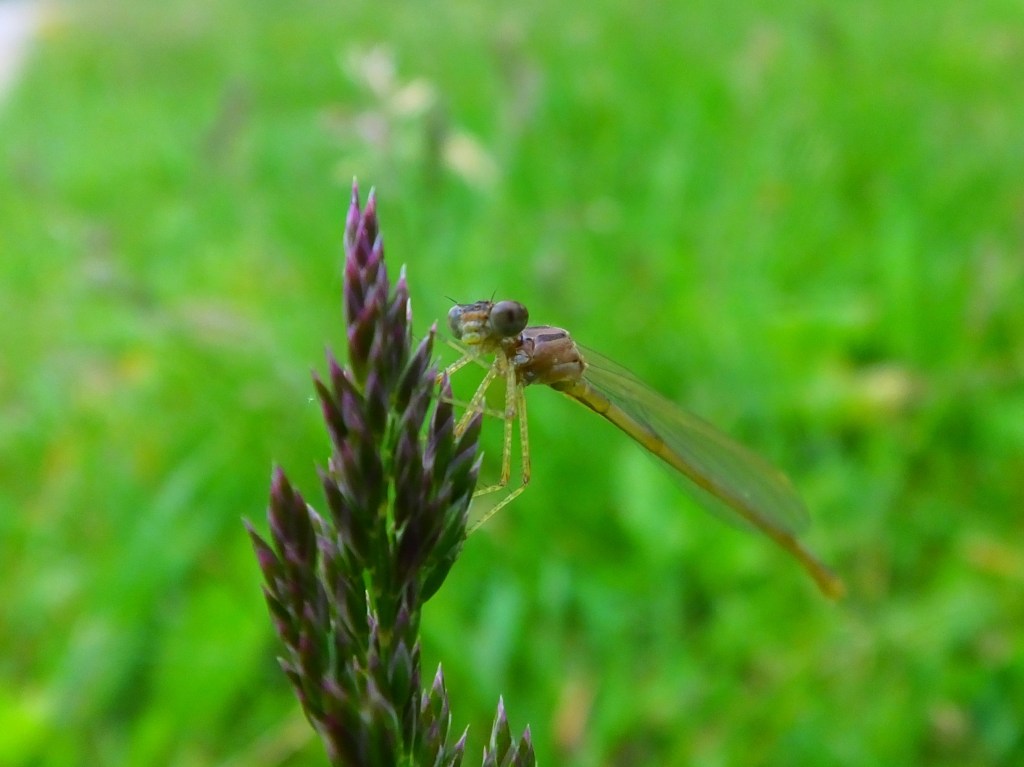 That’s a damselfly, I believe, but I’m not sure which one. It turns out there are a lot to choose from, but they all look more colorful than our little buddy. The full-on dragonflies are beginning to glide over the pond, as well, but none have been willing to collaborate with me yet.