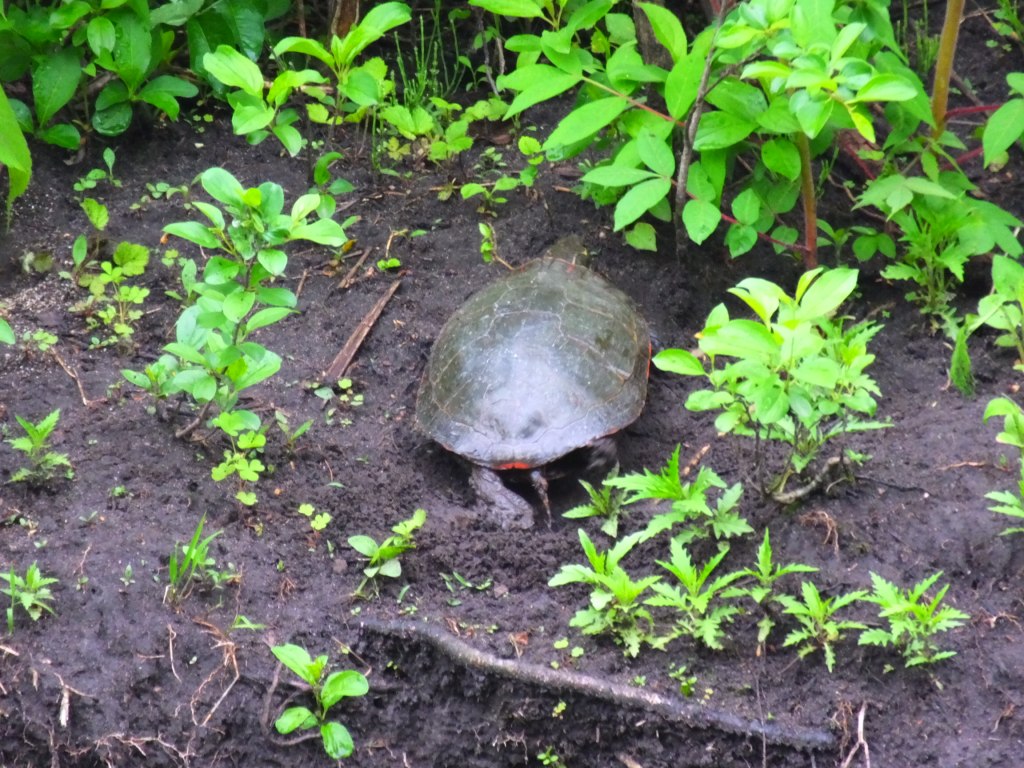 That’s a painted turtle on the steep west shore of the island putting those big, spade-shaped hind feet of hers to good use, as far as I can tell. I guess they’ve been up to more than just sunning themselves on a log.