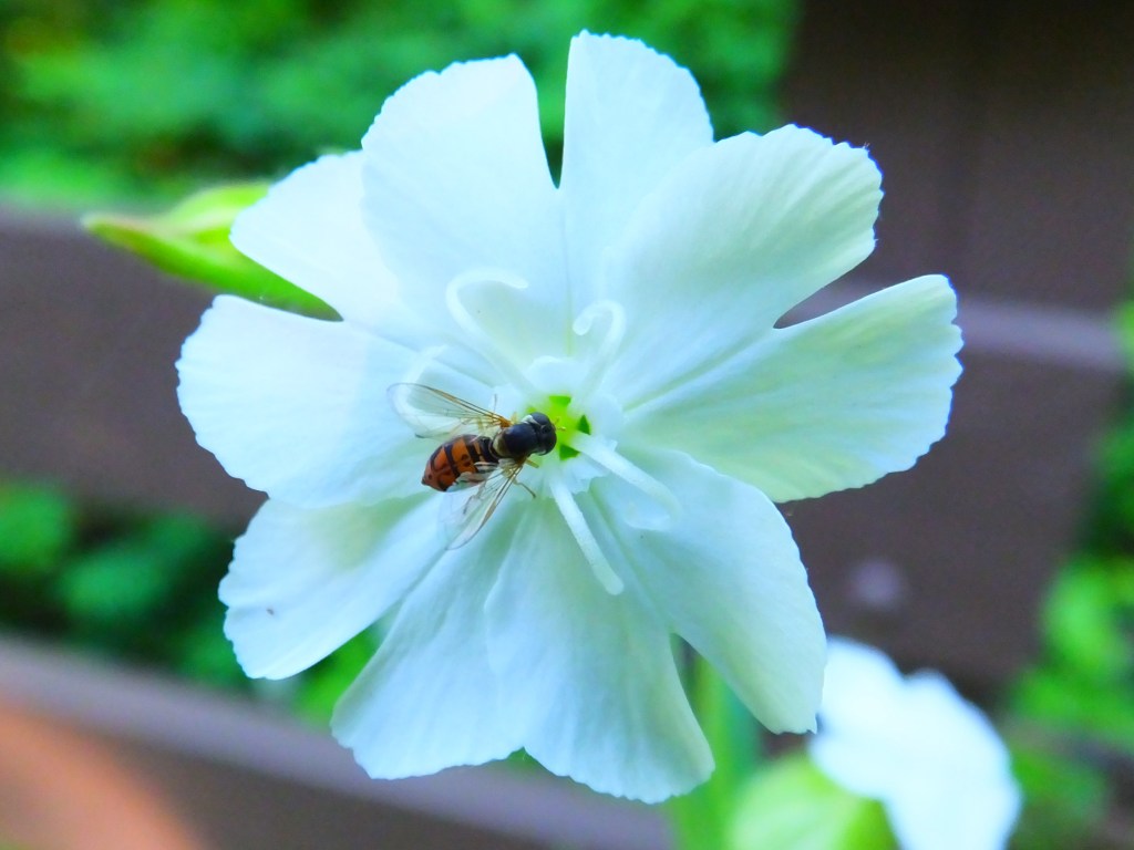 Oh, and it’s working on a bladder campion (Silene latifolia) blossom, which we first saw on June 1.