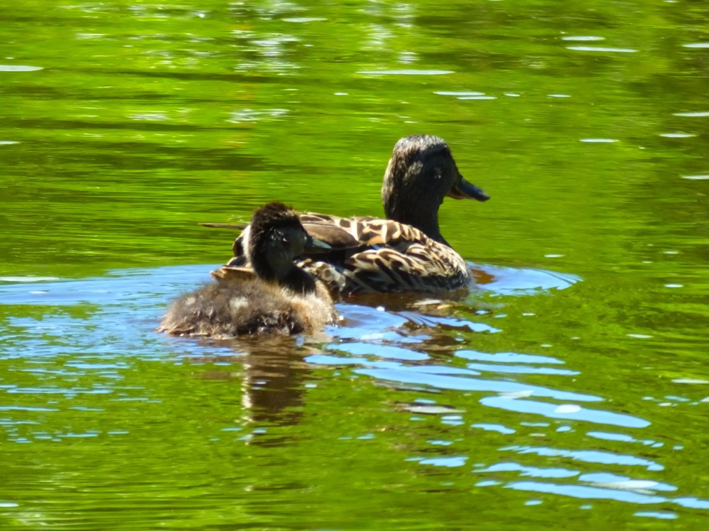 I am very excited to report the sighting of another duckling! This time it’s a good-sized blue-winged teal on the river with its mom on a gorgeous Sunday afternoon. You may recall that we first saw the Mr. and Mrs. on the pond back on April 11, when we still had frost on the grass and snow in the forecast. Isn’t it great to see that they’ve managed to make productive use of their time since then?