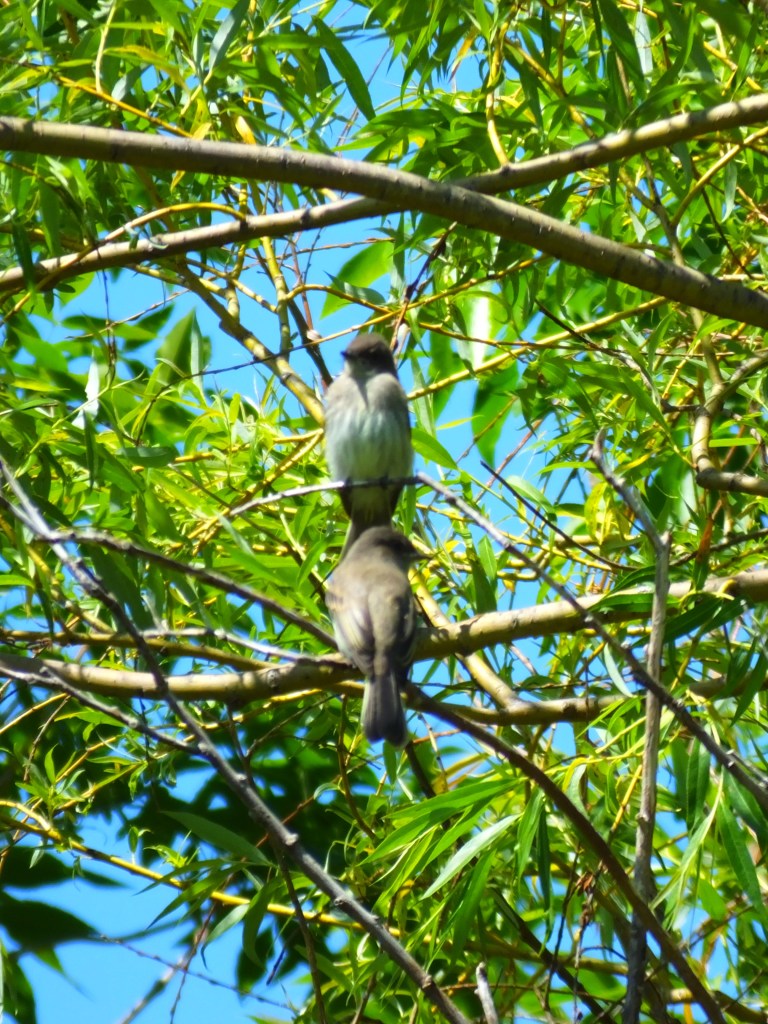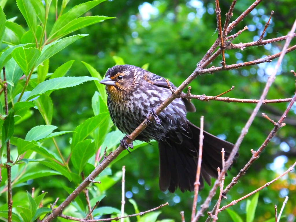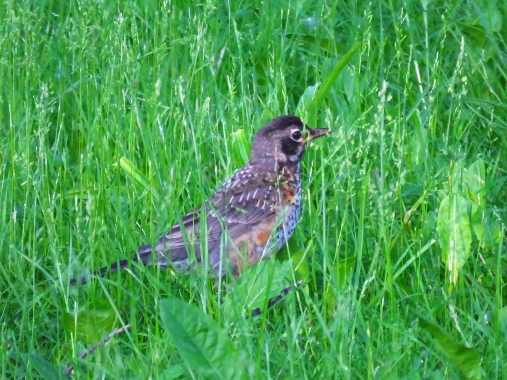 In the bird world, it is the season of the young and/or protective parents. From left to right, we’ve got a young robin still in spots out fending for itself, a pair that I can’t quite identify, and a female red-winged blackbird quite agitated by my presence by the pond. She looks just like the same one I annoyed on Saturday.