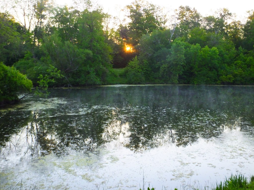 The bright sun on warm days and a clear, cool night made for a nice mist rising off the pond this morning.