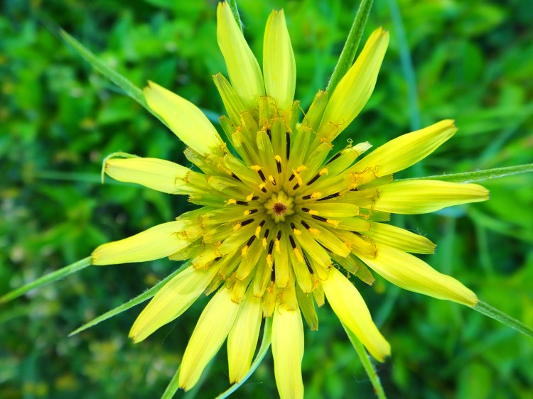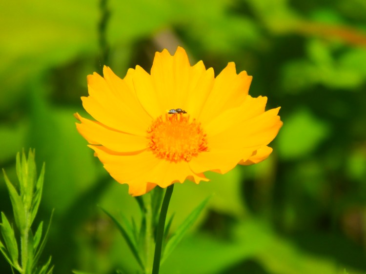 Meanwhile, the yellow salsify (Tragopogon dubius) has opened just outside the maintenance yard, and the lance-leaved tickseed (Coreopsis lanceolata) is feeding some tiny pollinator on the steep slope from the beer garden down to the river.