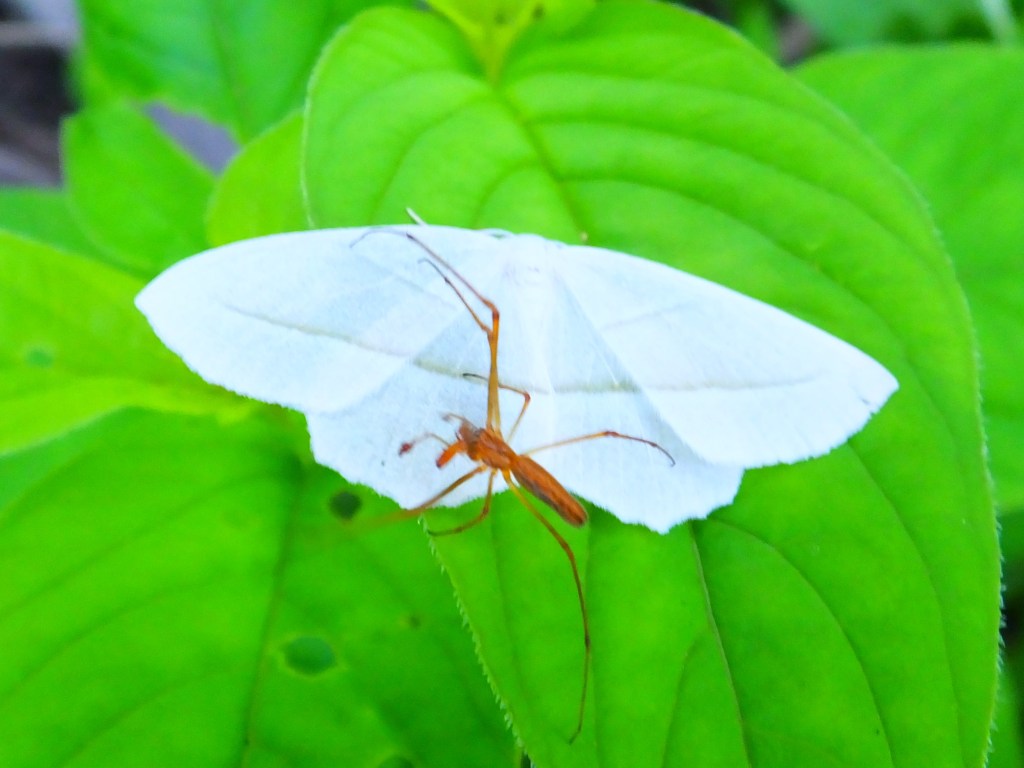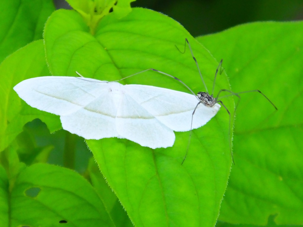 Meanwhile, have you ever had that experience when you just get yourself all spread out on a nice leaf and then every spider and his brother has to come crawling all over you? Well this pale beauty, and yes, that’s its real name, (Campaea perlata) knows exactly how you felt.