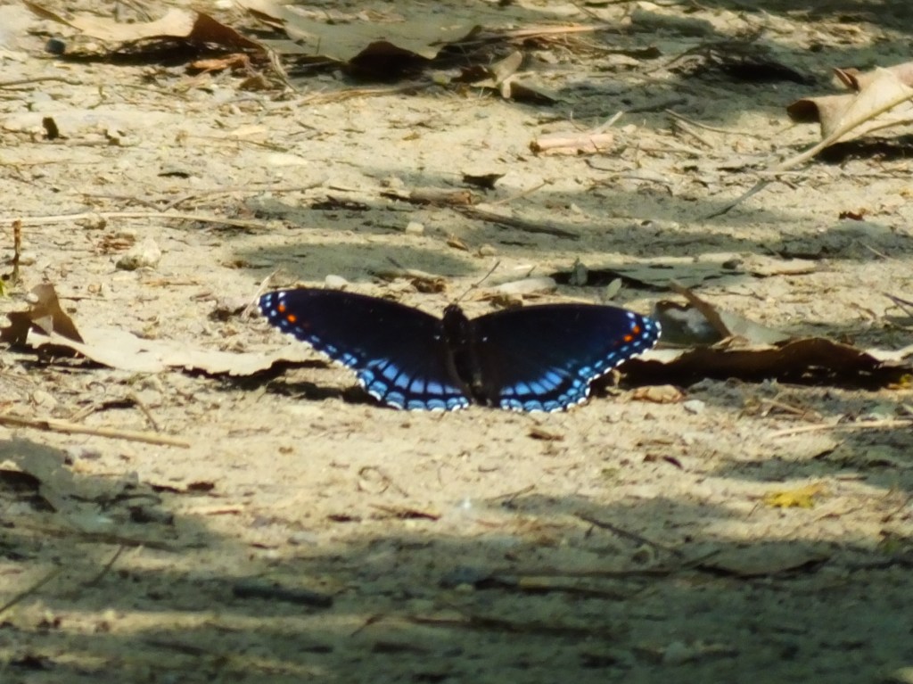 Plus, a couple of butterflies. What might be a mustard white (Pieris napi) or a West Virginia white (Pieris virginiensis) “nectoring” on bee balm aka wild bergamot (Monarda fistulosa) at the  Benjamin Church House, and a red-spotted purple (Limenitis arthemis) on the trail down by the river not letting me get any closer.