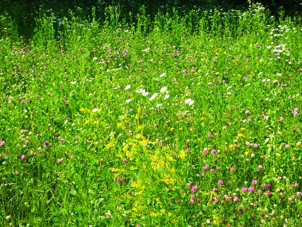 Oh, and the flowers he was prancing between are in an amazing patch on the, now-closed, northernmost, former parking lot. It’s got daisies and daisy fleabane, white and red clover, bird’s-foot trefoil, white campion, a patch of lance-leaved tickseed, yellow sweet clover, crown vetch, and some bright-blue tufted vetch. Here are some pictures in which I attempt to capture the spectacle, but don’t really do it justice. I hope you try to see it in person. Sometimes beautiful things like this don’t last.