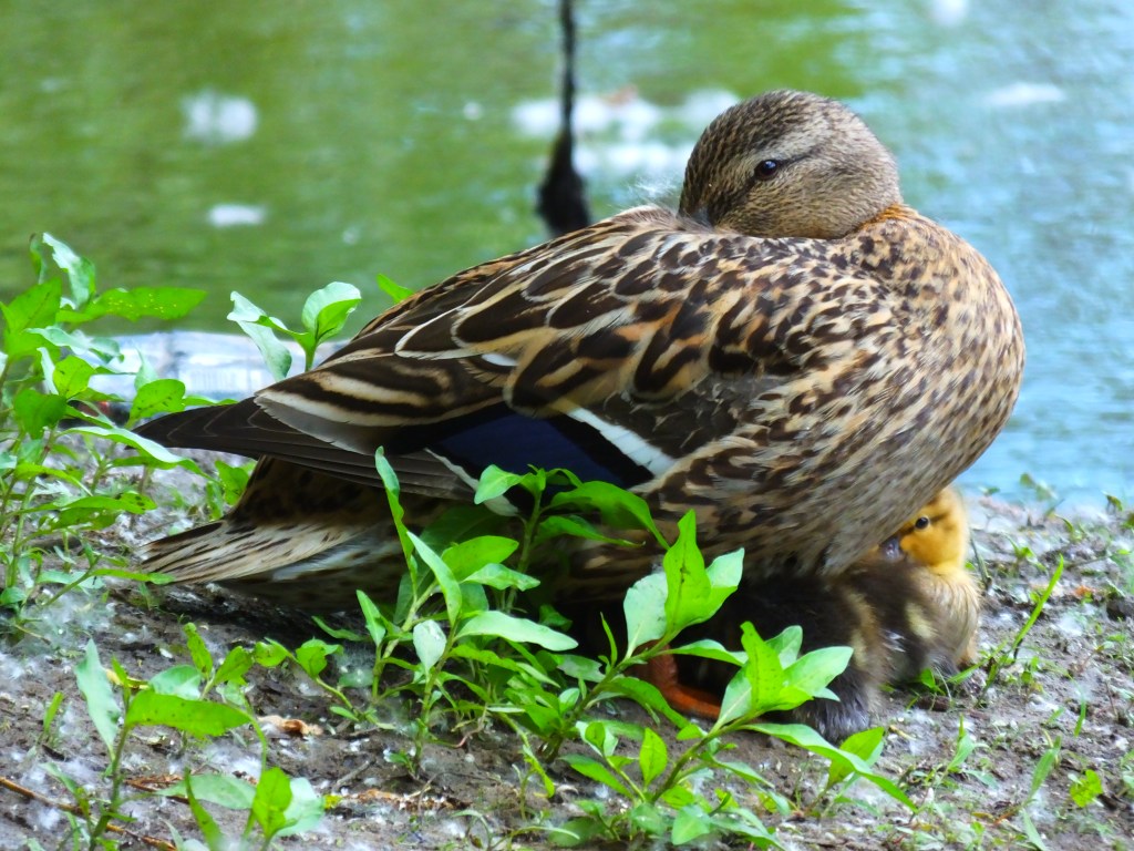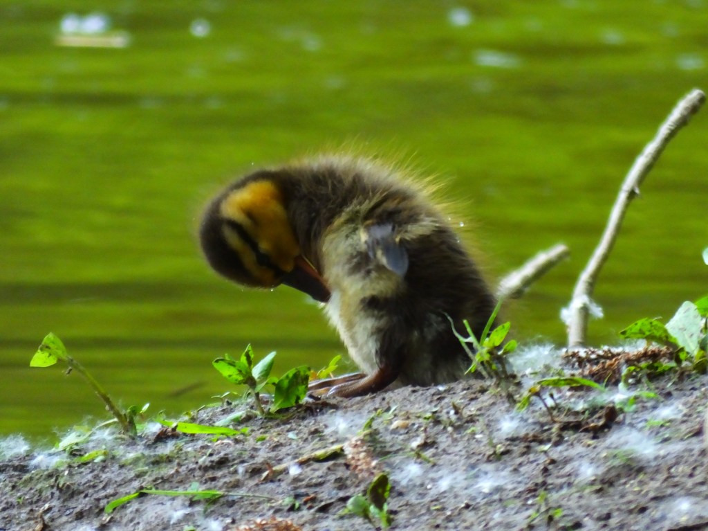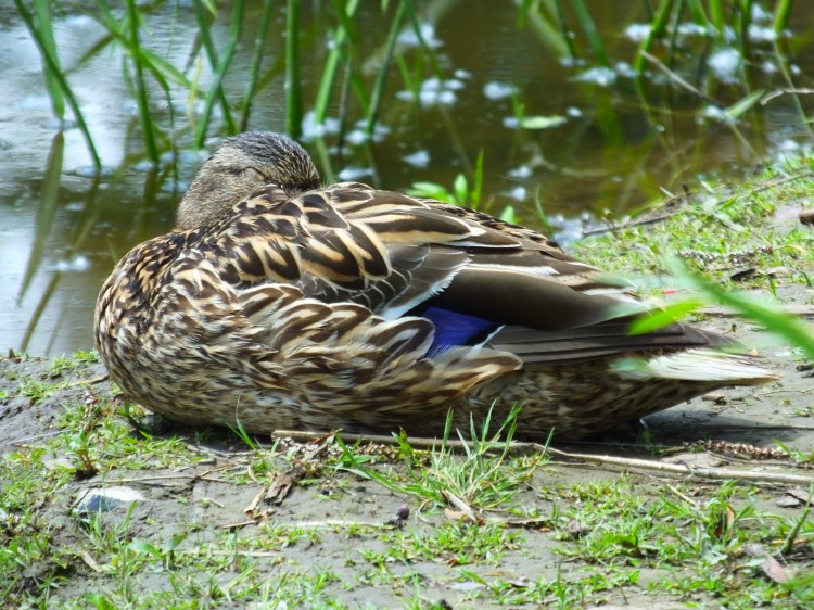 Yesterday afternoon I spotted two families of mallards: one mom with a single teenage daughter, and another mom with five toddlers. They were all surprisingly willing to let me take pictures, and both moms took naps in the middle of the afternoon as I stood there taking more. What’s your guess, moms? Just plain exhaustion?
