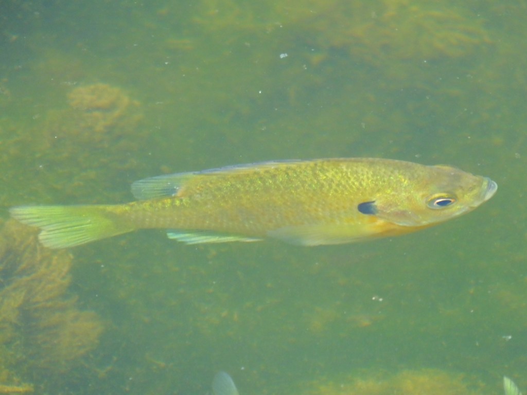 Any anglers out there? Might the fellow on the left be a bluegill (Lepomis macrochirus) mentioned in the Milwaukee urban fishing rules? He does appear to have a prominent blue gill, but he looks a lot sleeker than the pictures of bluegill I see online. Perhaps that’s just an optical illusion.