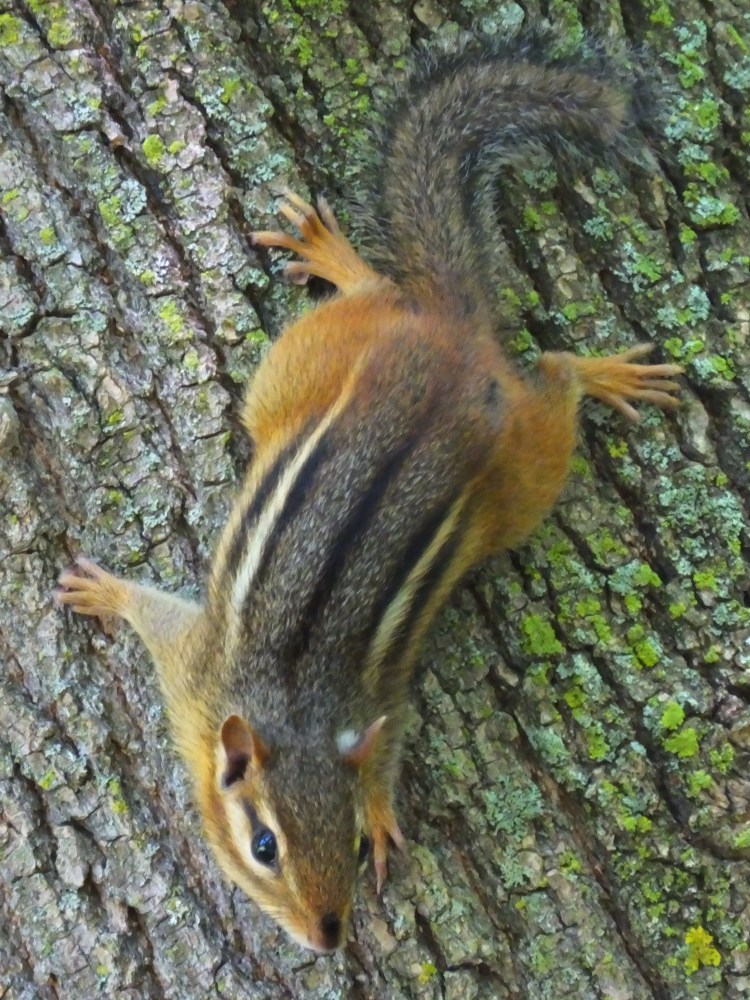 It was nap time again for mom and her ducklings around noon again, and don’t worry, all 5 were still there. It’s just that this little pile o’cuteness on the river bank made the best photo. Also, chipmunks climb trees just fine, it turns out, a fact that I did not know until now. This little guy was about 8 feet up and passionately involved in some dispute with another chipmunk. Perhaps he just doesn’t want to do another album or he and a rival are vying for the affections of Brittany.