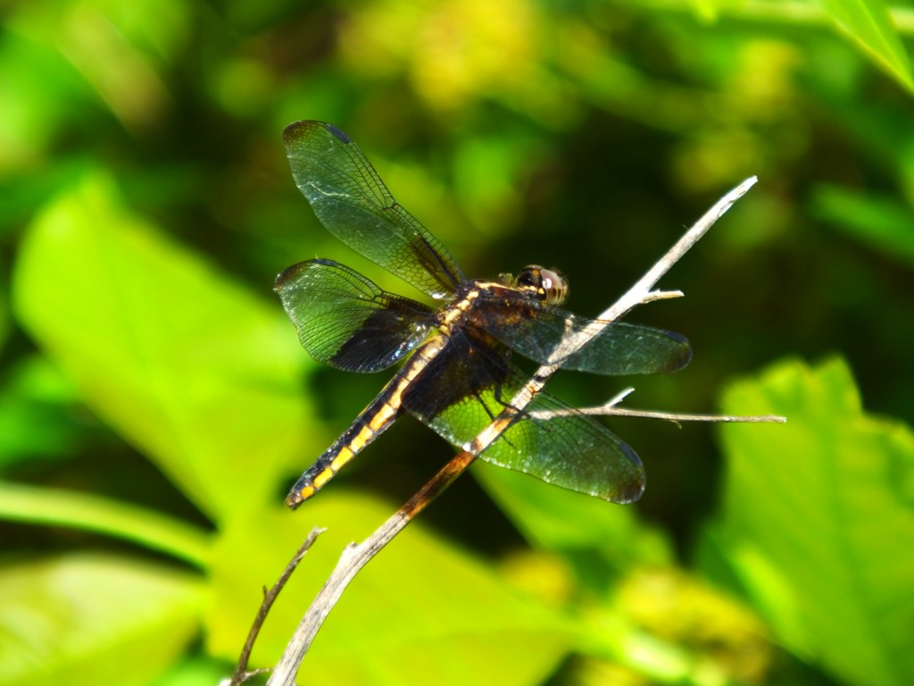 Meanwhile, back by the pond, we’ve got either new dragonflies emerging, or dragonflies that I simply haven’t managed to capture until now. They are, from top/left to bottom/right a male and a female widow skimmer (Libellula luctuosa), which the BugLady describes as “exquisite” and her favorite “King Skimmers.”
