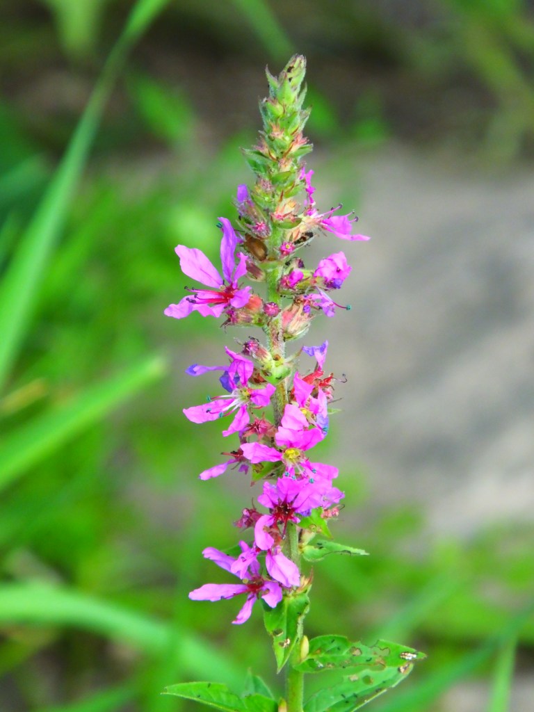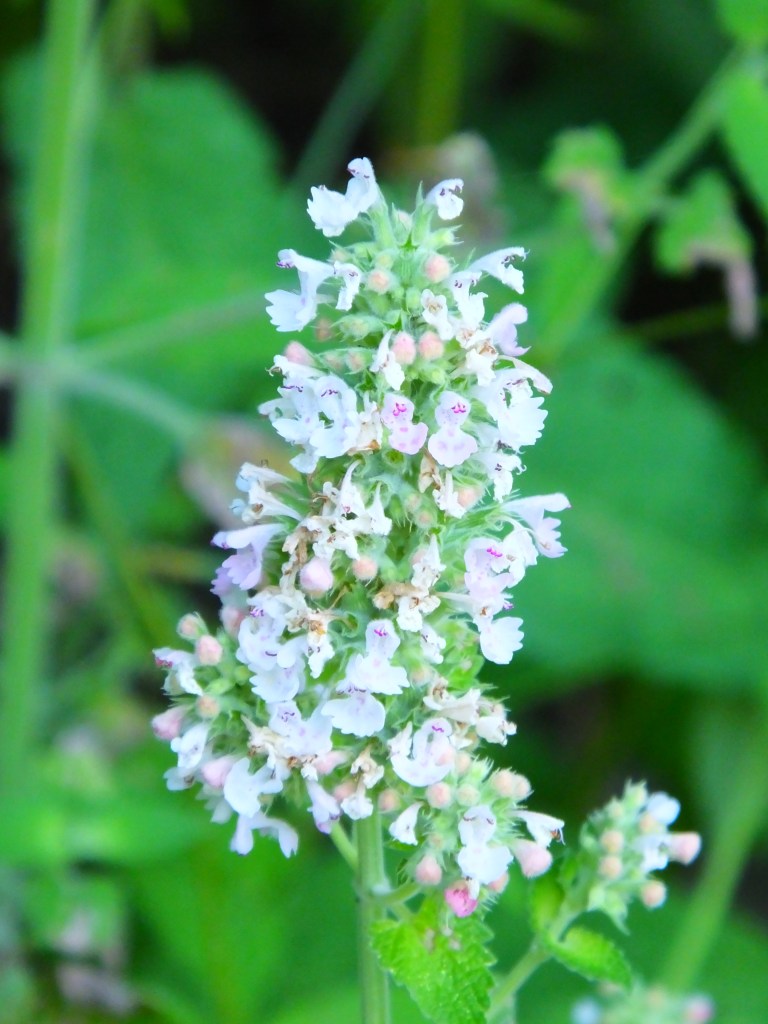 Speaking of blossoms, here are two more that I’ve spotted recently. From left/top to right/bottom, we’ve got purple loosestrife (Lythrum salicaria), growing by the river, listed as “a restricted invasive species” by the DNR, and which I should probably pull up the next time I see it 🙁; and some variety of mint, based on the aroma from a crushed leaf, maybe horse mint (Mentha longifolia) growing right beside the falls.