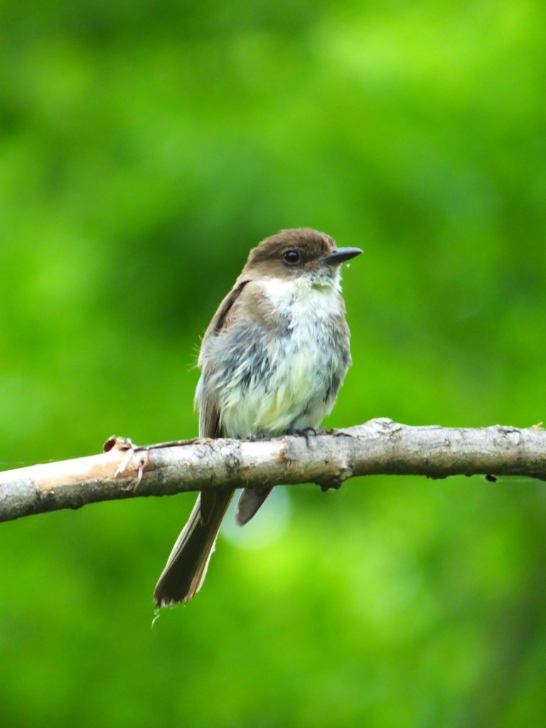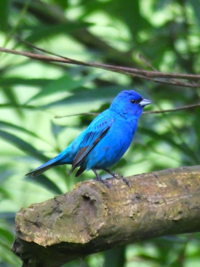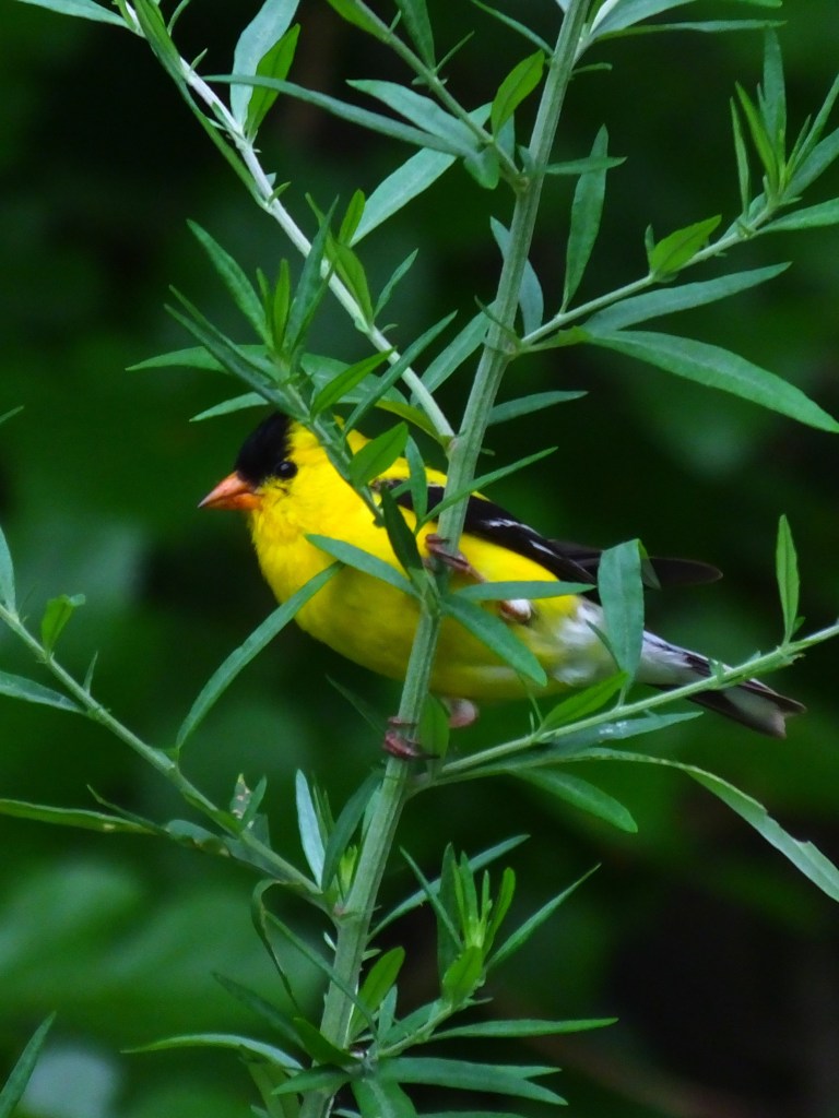 A few birds seem much more willing to pose for a picture recently. From top/left to bottom/right, we’ve got an American goldfinch, who we last saw on some Canada thistle; what appears to be an juvenile eastern phoebe, whose elders I’ve never seen sit still for so long; and our new best buddy, the indigo bunting, showing off his blue wings this time so we know for sure he’s not a blue grosbeak.