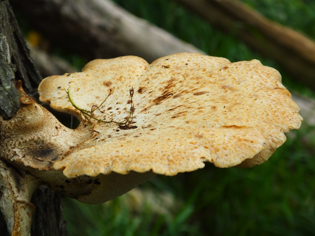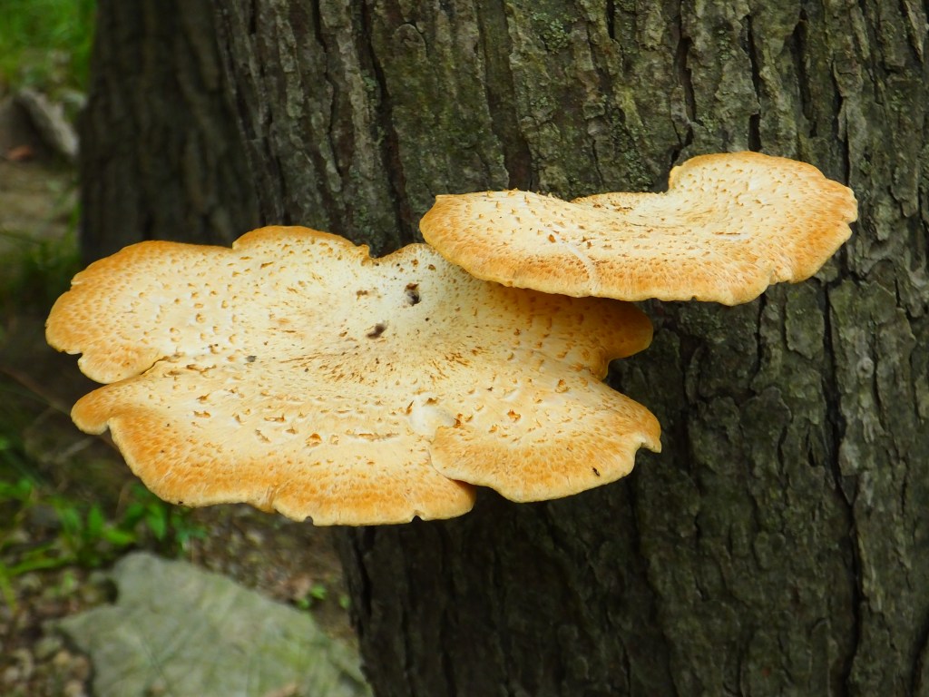 Those dryad’s saddle, aka pheasant’s back (Cerioporus squamosus) that were “in the “pig nose” stage” just three days ago sure have grown!