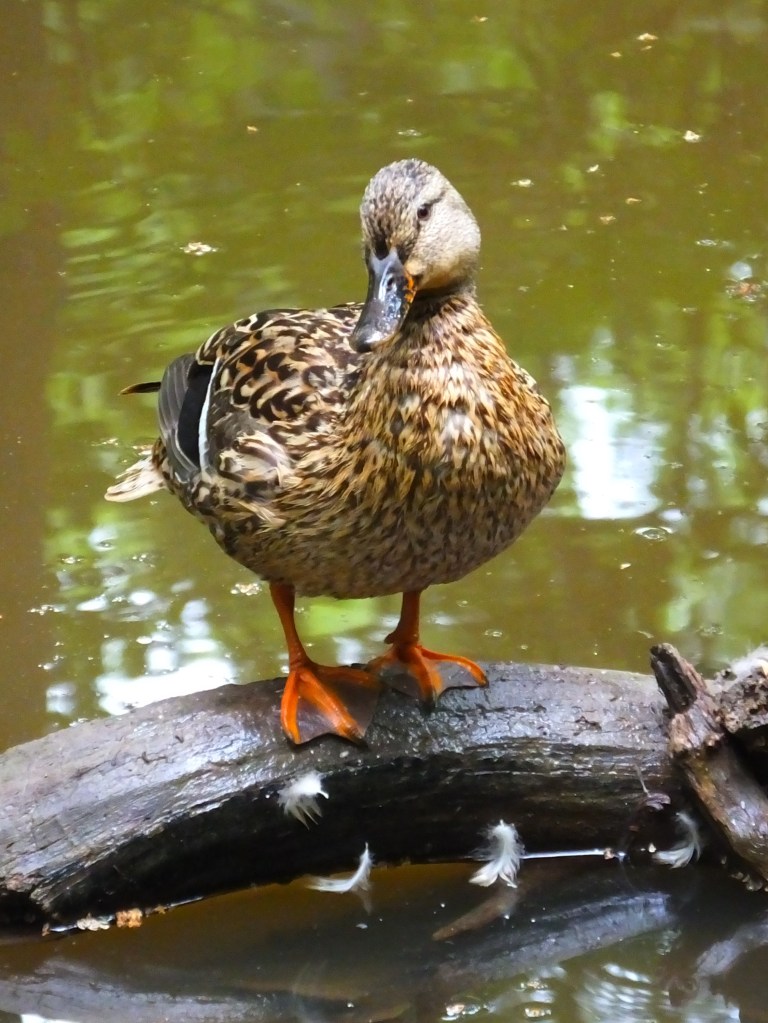 Finally, the sad news. The wood duck hen was by herself on the pond again this morning, and of the five mallard ducklings, including the yellow one, only four remain. 😢