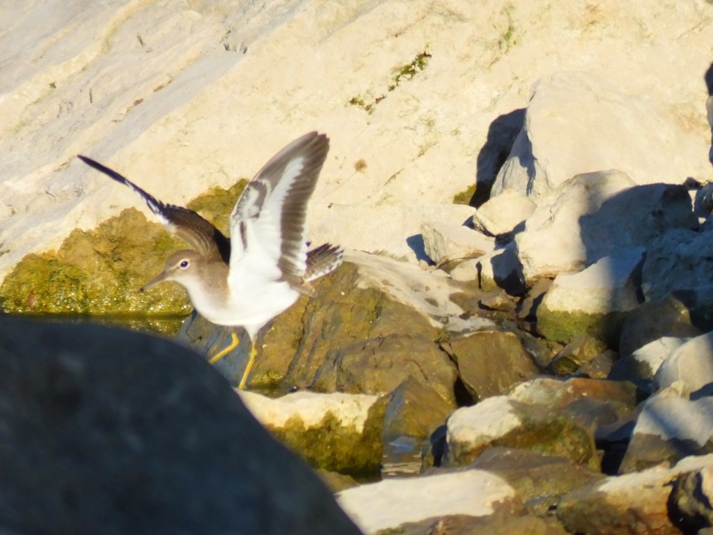 Also, the juvenile sandpiper appears to be getting more comfortable in front of the camera, and here he is practicing his crane kick.