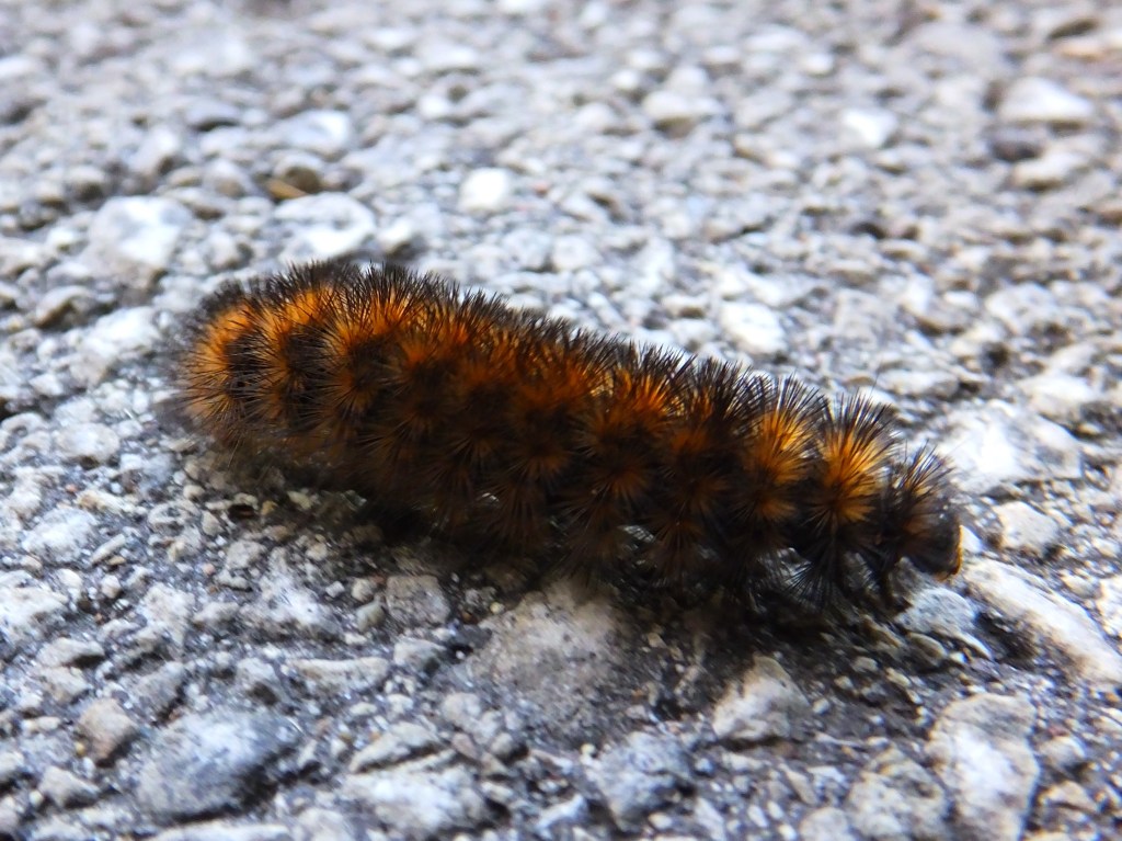 Finally, we’ve go one more newcomer, and according to Identifying Hairy Caterpillars, it is either a Cream-spot Tiger Moth, a White Ermine Moth, or a The Ruby Tiger Moth, all of whom are stunners, eh?