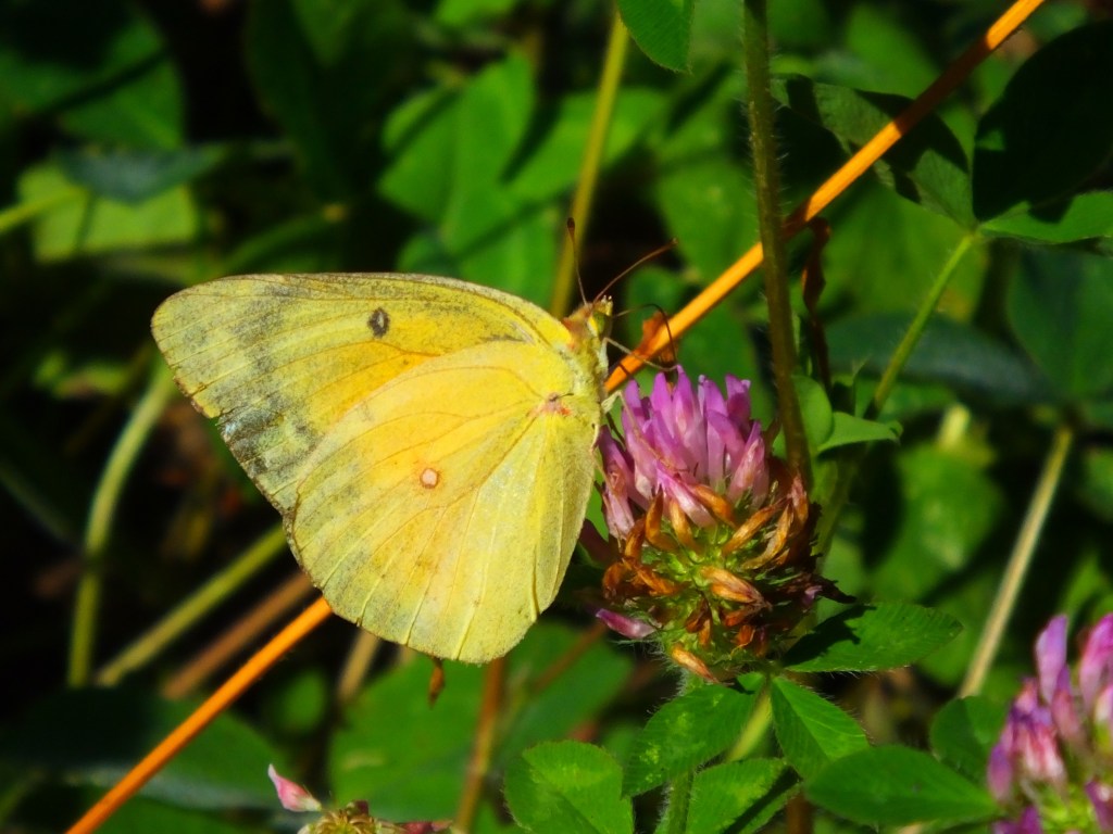 And here’s a pink-edged sulphur (Colias interior), which we just saw a couple of days ago, but who could say no to this image?