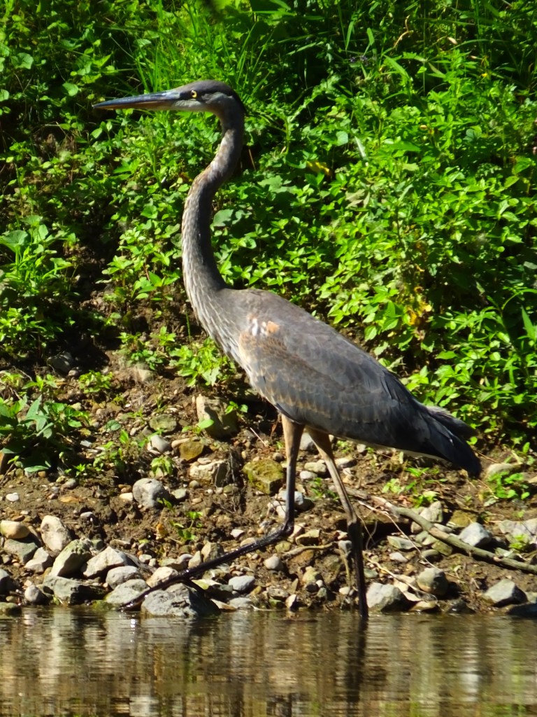 I also saw three blue herons fly by and was lucky enough to stumble across one pausing to get a bite and who appears to be a juvenile, which we haven’t seen before, either.