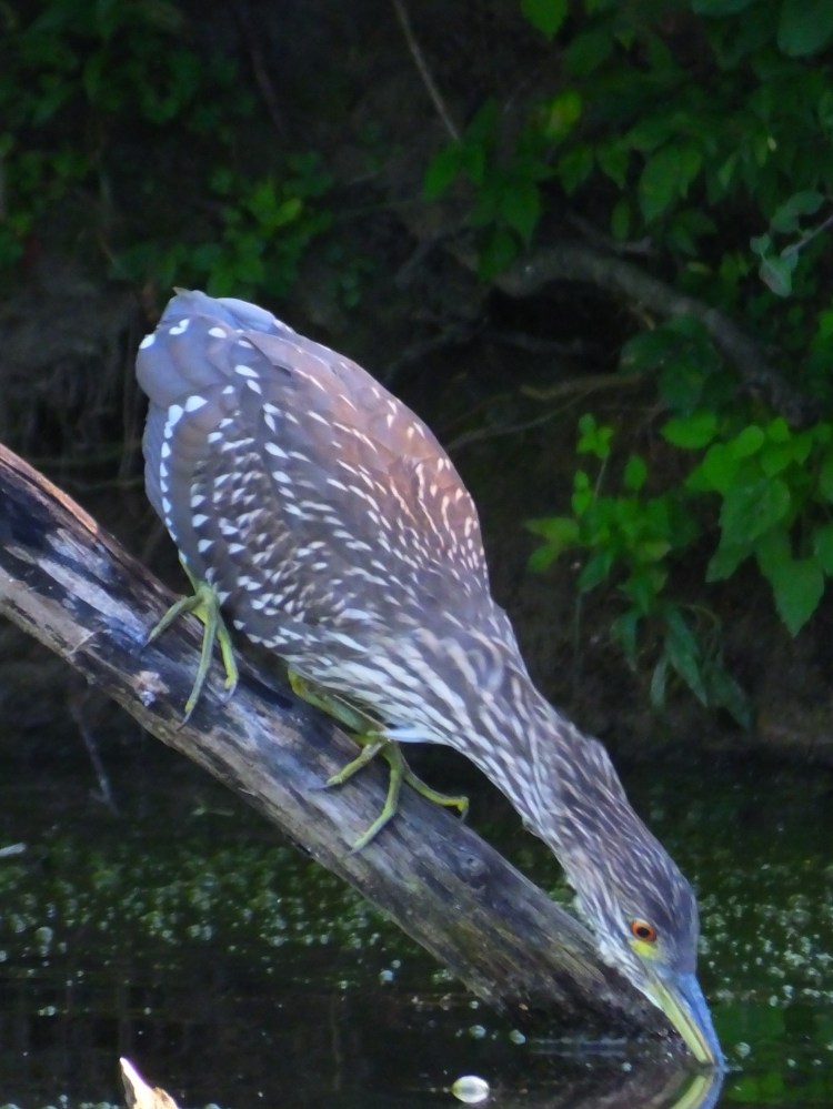 It was actually sharing a log with our new best buddy and recent pond regular, the juvenile black-crowned night-heron.