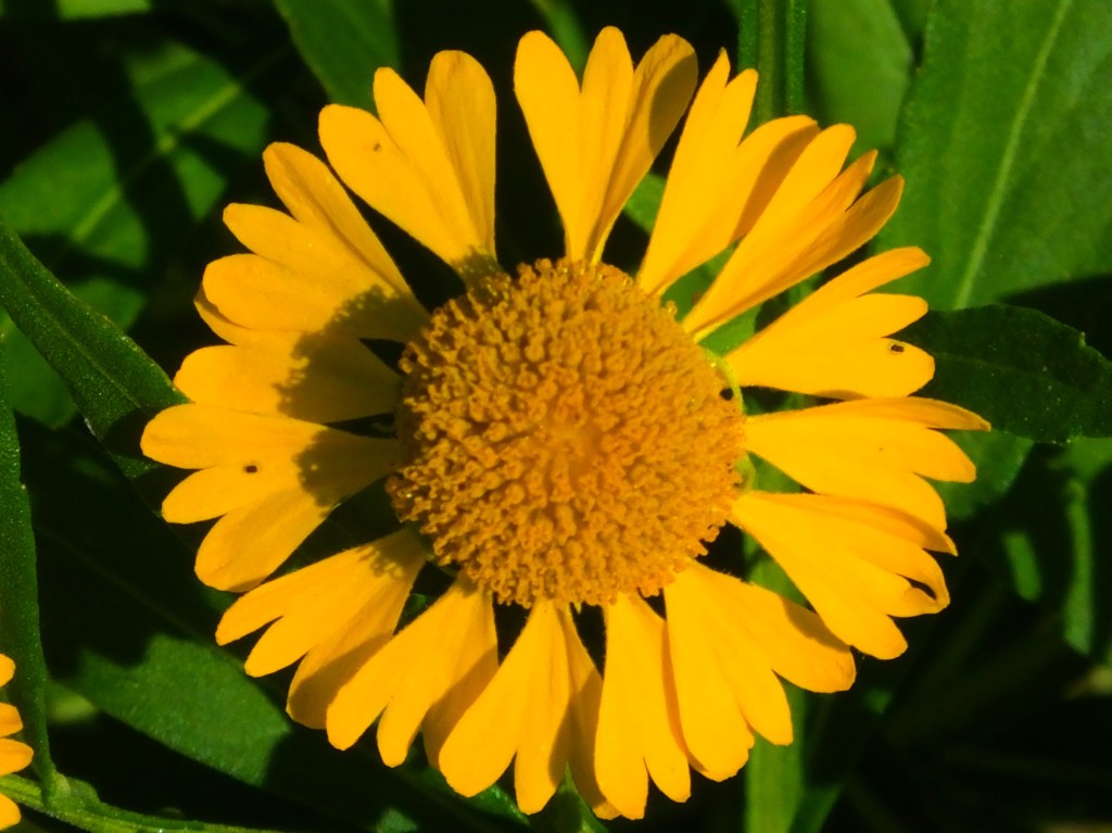 Finally, you’re not going to believe the common name of the new flower I found blossoming on the river by the boat launch. The common sneezeweed (Helenium autumnale) “is a North American species of flowering plants in the sunflower family.” I was wading through the weeds from this picture when I nearly ran into Mrs. Orb Weaver above and almost got to put that bumblebee analogy to the test.