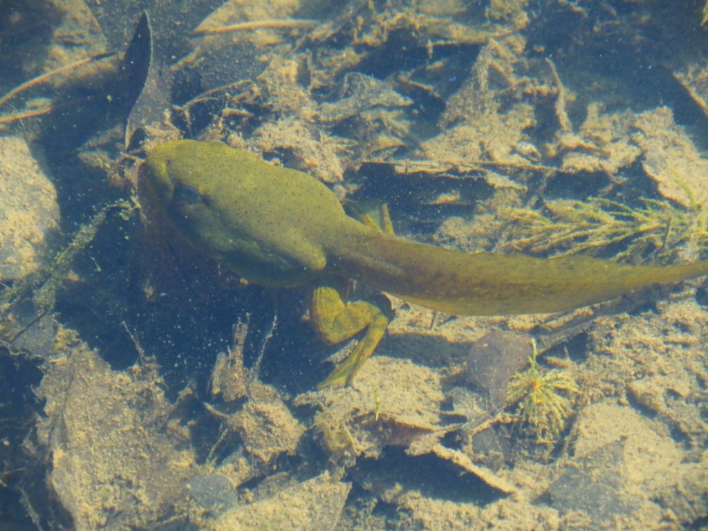 Speaking of tasty critters in the pond, you may be as surprised as I was to still see tadpoles this morning. I first saw one back in April, showed you a picture on June 4, and another picture of one with legs on June 23. That’s quite a breeding season they have, eh?