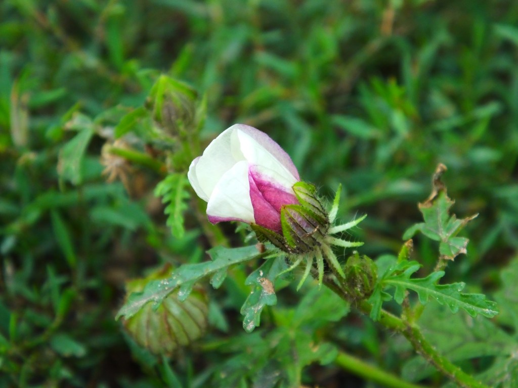 The Pedia of Wik reports that “the flowers of the Hibiscus trionum can set seed via both outcrossing and self-pollination. During the first few hours after anthesis, the style and stigma are erect and receptive to receive pollen from other plants. In the absence of pollen donation, the style bends and makes contact with the anthers of the same flower, inducing self-pollination.” That sounds handy, and as soon as I post this, I’m going to head back out to see if I can capture an image of it open.