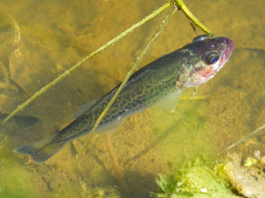 Finally, I spotted yet another fish in the river that is new to me. Can you help me identify it? I’d say it was about 3 inches long. Maybe a young bass?