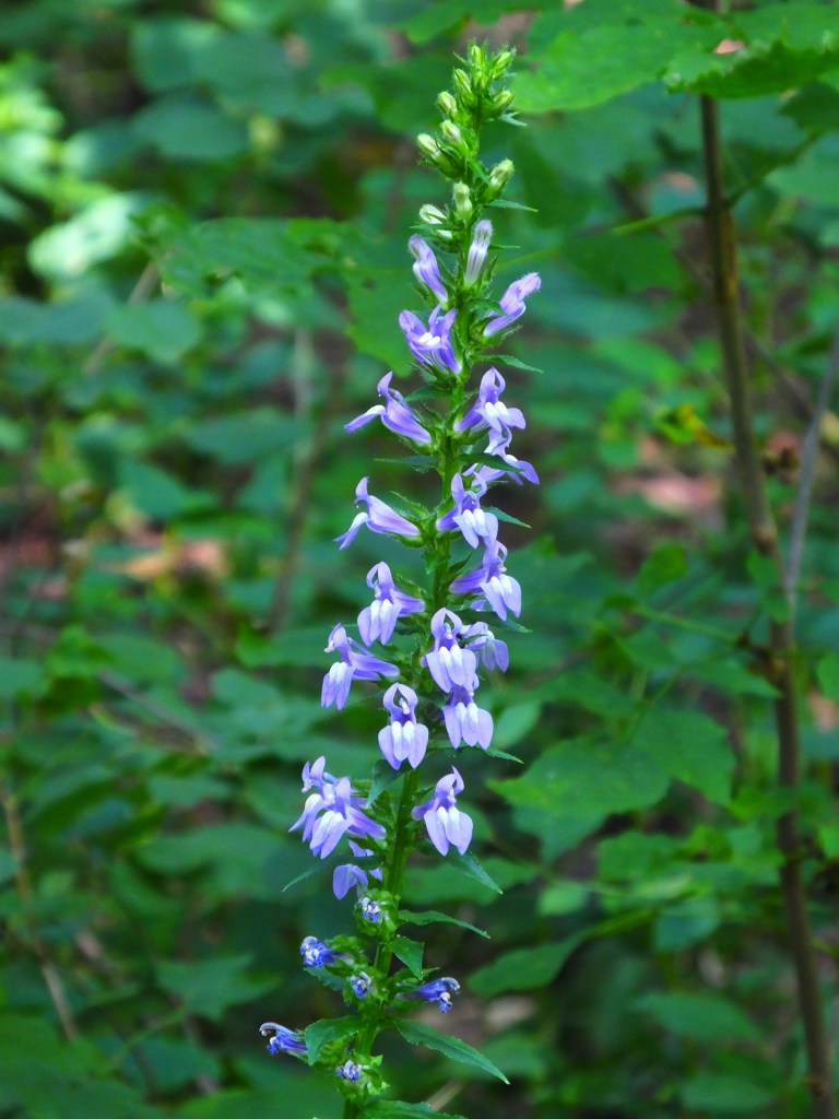 Anyway, back to the gorgeous here and now. My one new sighting in Estabrook for today is this pretty, native, late-summer wildflower, the blue cardinal flower, aka great blue lobelia (Lobelia siphilitica) growing in the shade along the now-closed road from the parkway down to the meadow and boat launch.
