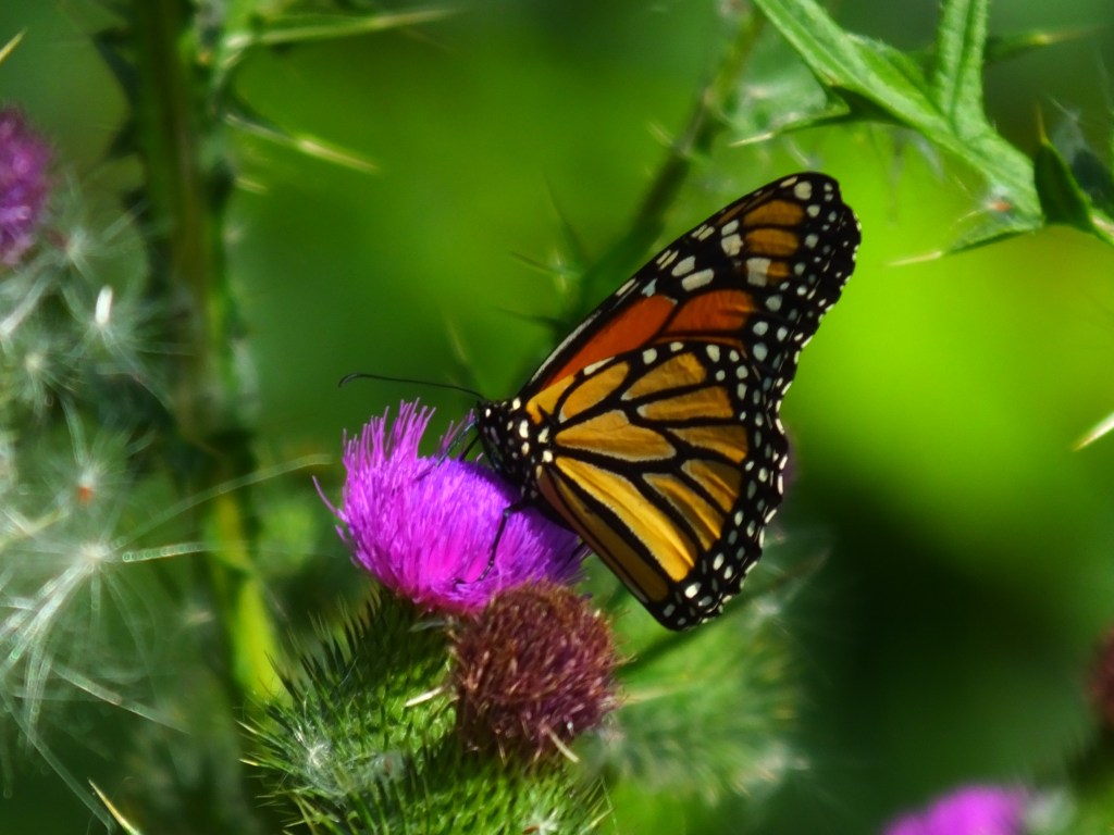 The monarchs and bees were mobbing the bull thistle for its sweet, sweet, nectar.