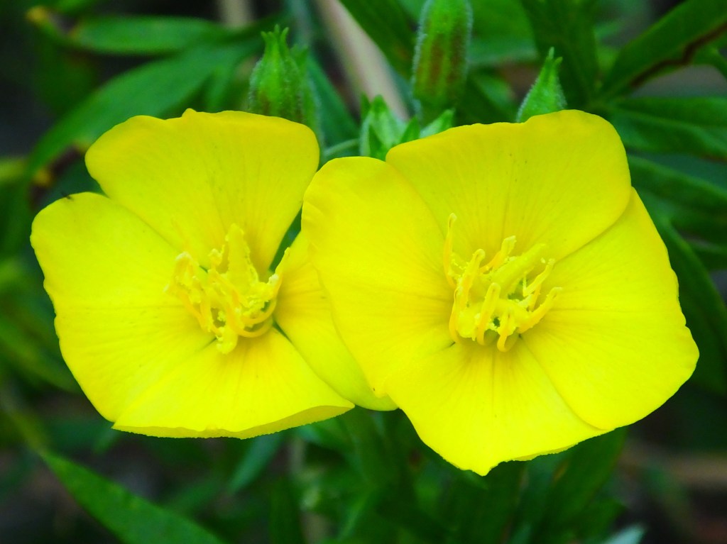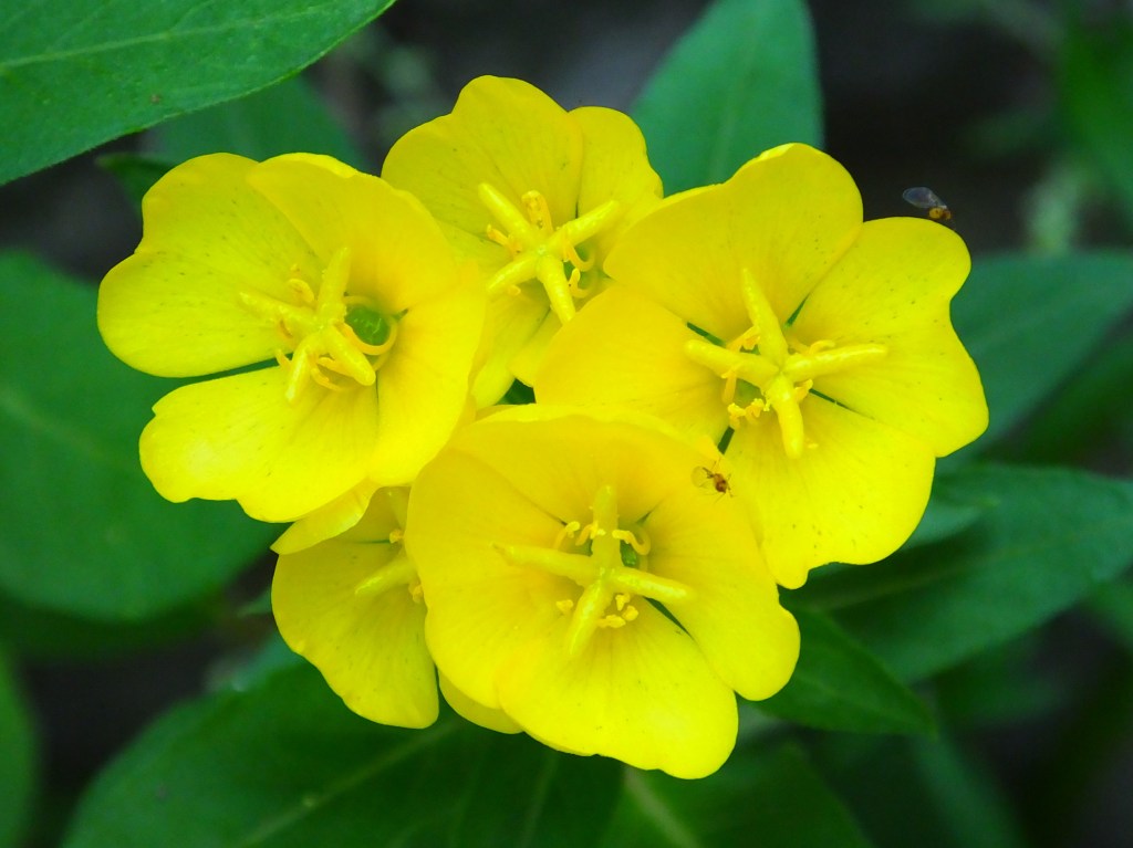 The wild evening primrose (Oenothera biennis), which we’ve been seeing for over a month, looked especially crisp this morning. The brown-eyed susans and jewelweed also appeared rejuvenated.