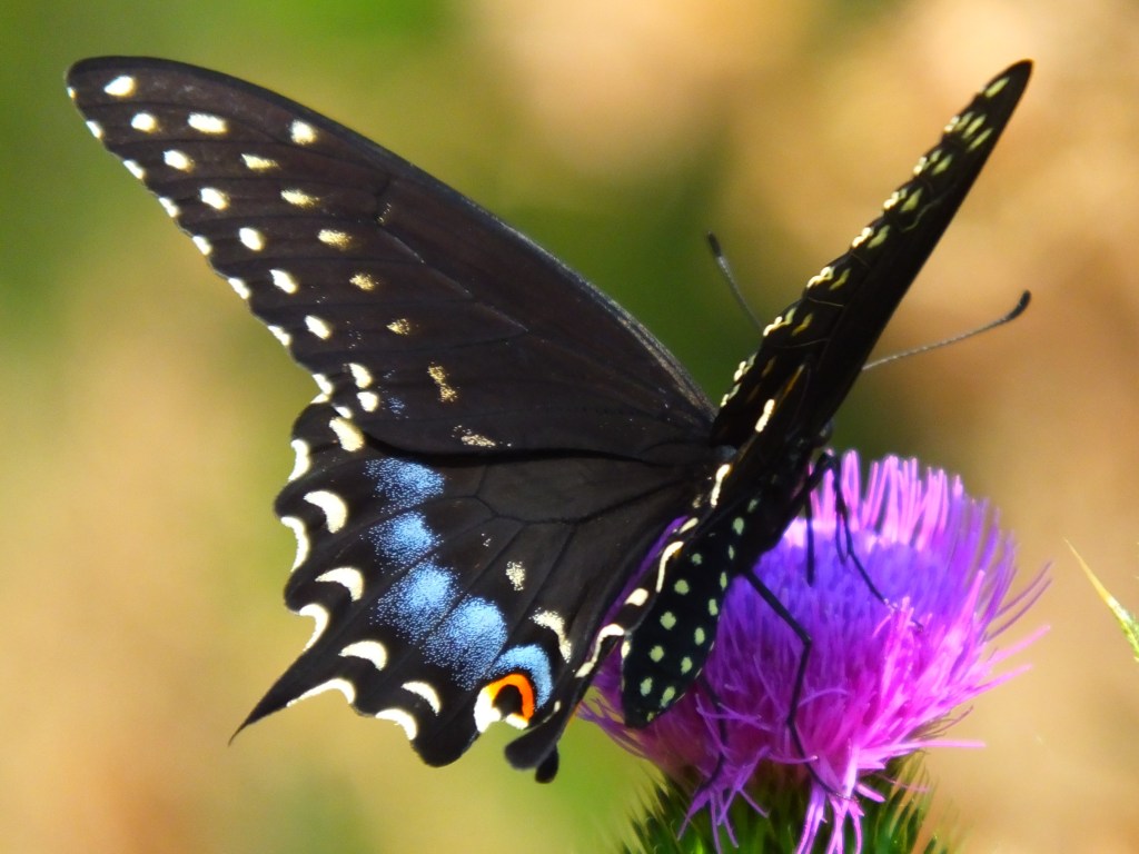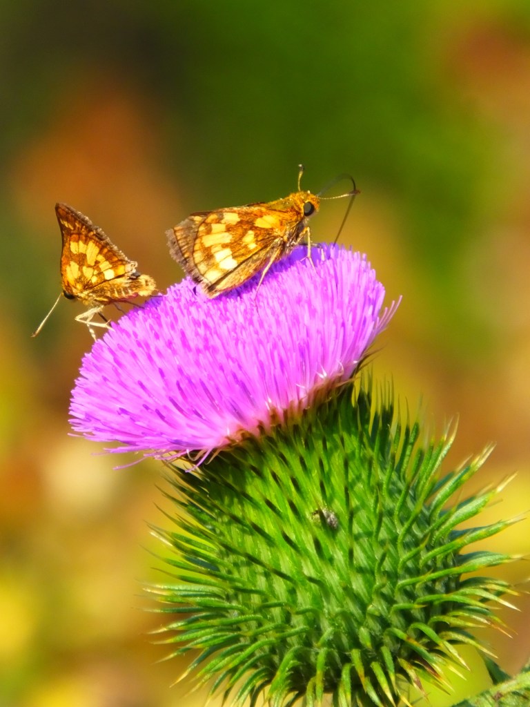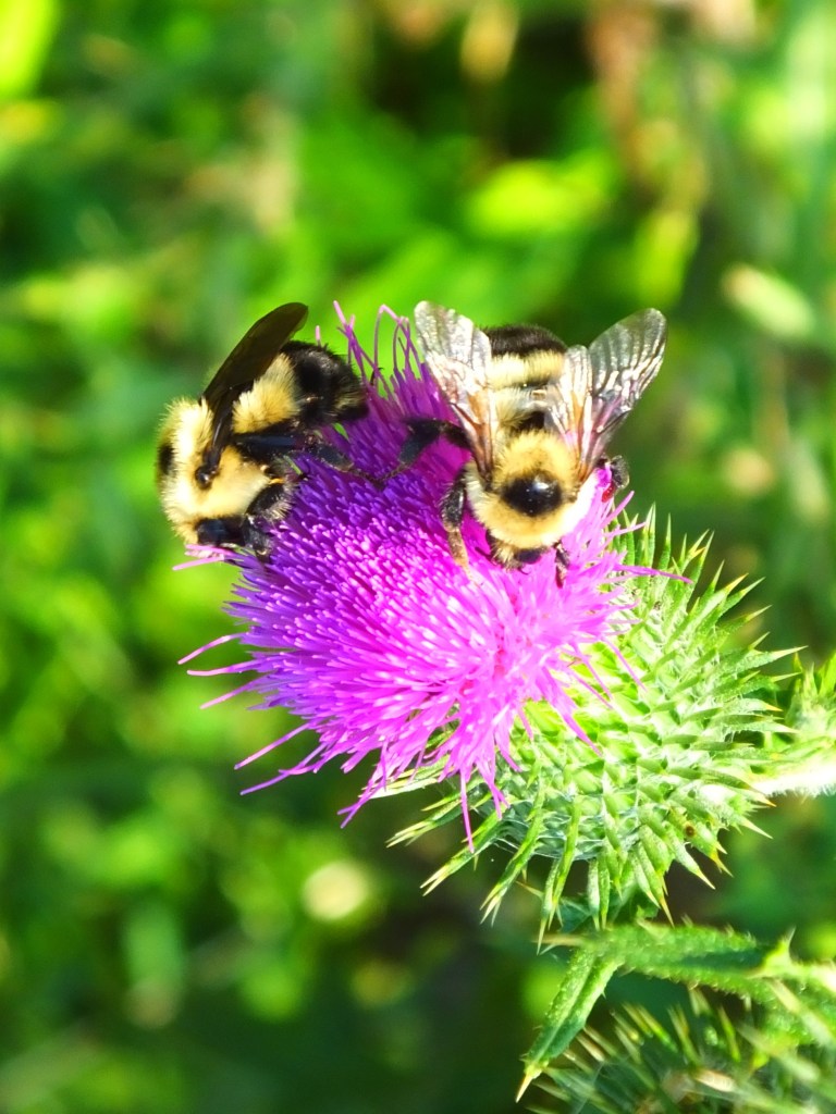 Meanwhile, the bull thistle continues to do a yeoman’s job of keeping everyone fed. This gallery of familiar faces include a couple of Peck’s skippers, a female eastern black swallowtail butterfly (Papilio polyxenes), and, of course, a couple of bumblebees.