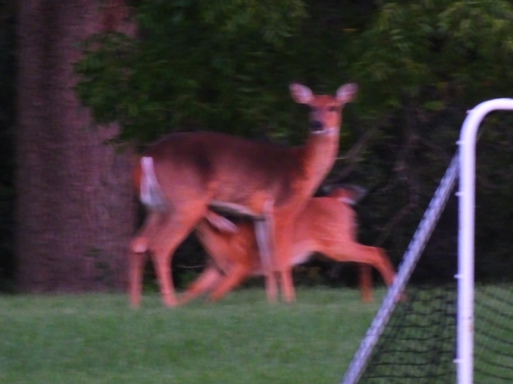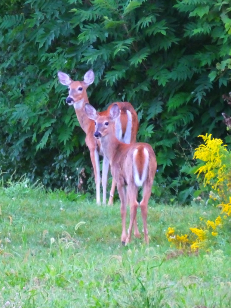 The initial pair of fawns, the siblings, were playing with each other, and one eventually jumped a couple of feet straight up, but you’ll have to take my word on that. You know the drill: dim light, far away, old camera, blah, blah, blah.