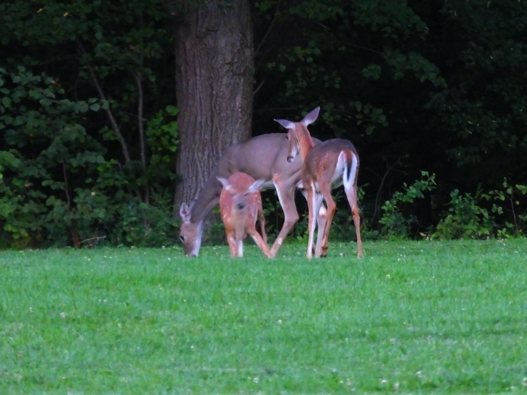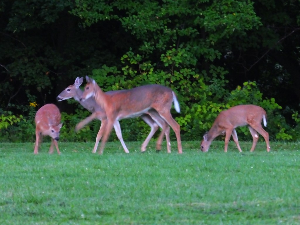 It was another beautiful morning in Estabrook Park, perhaps the last one for a while, and the deer appeared to be especially frisky. There were just the four regulars today, and the youngsters were running and playing like puppies. They even provoked Mom at one point. The teenager seemed especially fascinated by the sensation of running across the soft sand in the volleyball court.