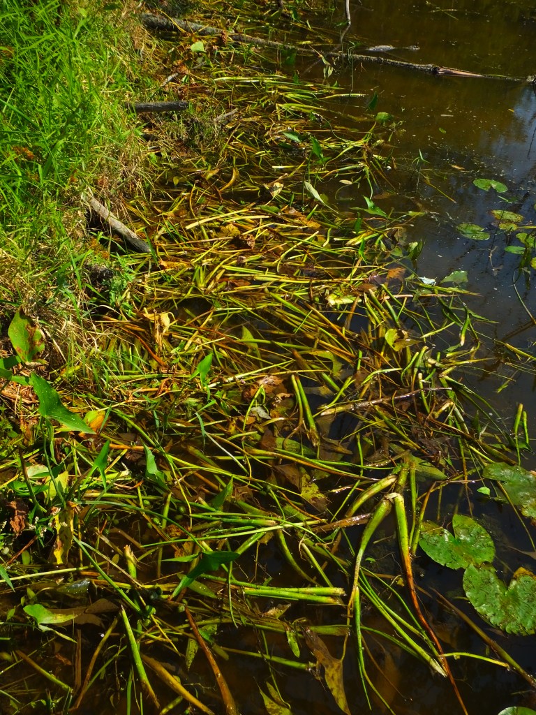 Perhaps they’ve been too busy harvesting arrowhead roots (Sagittaria) instead, which I read have been “prized for millennia as a reliable source of starch and carbohydrates.” Apparently “Indian people [sic] often sought caches of Sagittaria tubers stored by muskrat and beaver.” At least I hope that’s what’s going on. Here’s what patches of arrowheads, just off the mudflats, look like after a harvest.