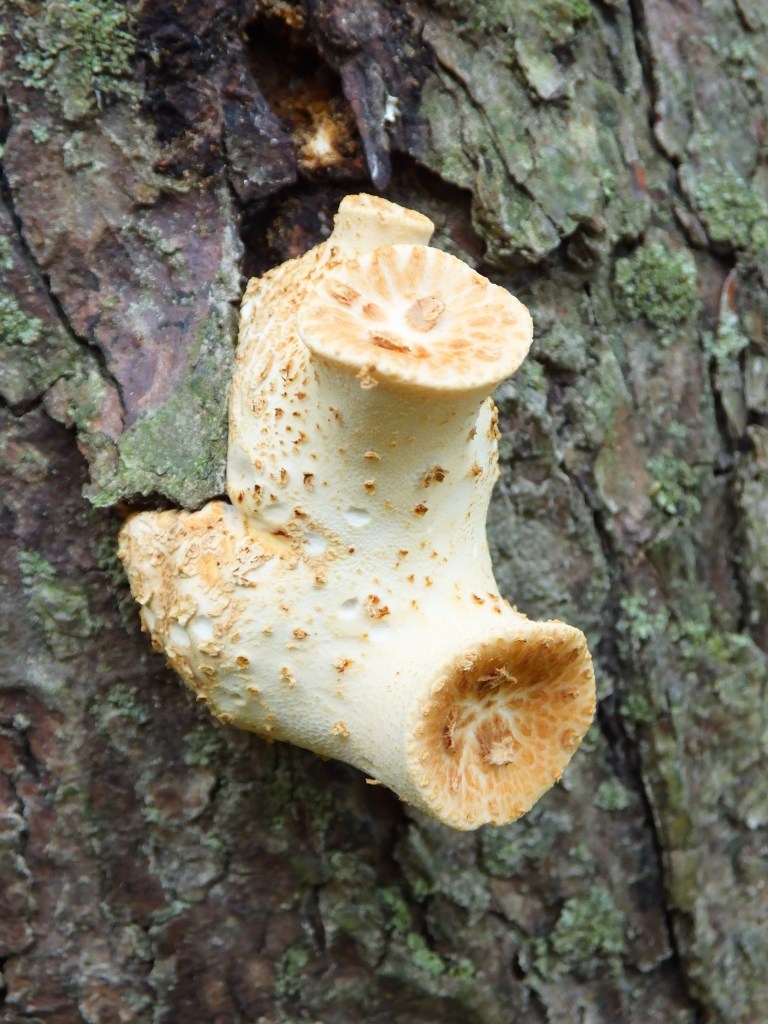 Also along the river, our old buddy, the dryad’s saddle, aka pheasant’s back mushroom (Cerioporus squamosus) looks like it’s going through “the “pig nose” stage” one more time.