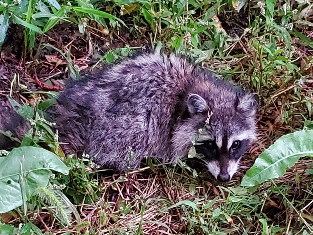 In the meadow by the boat launch, I spotted this little critter trying to hide in the grass. I don’t know what’s up the the raccoons lately, but after seeing nary a hair on their head all summer, now they seem to be everywhere.