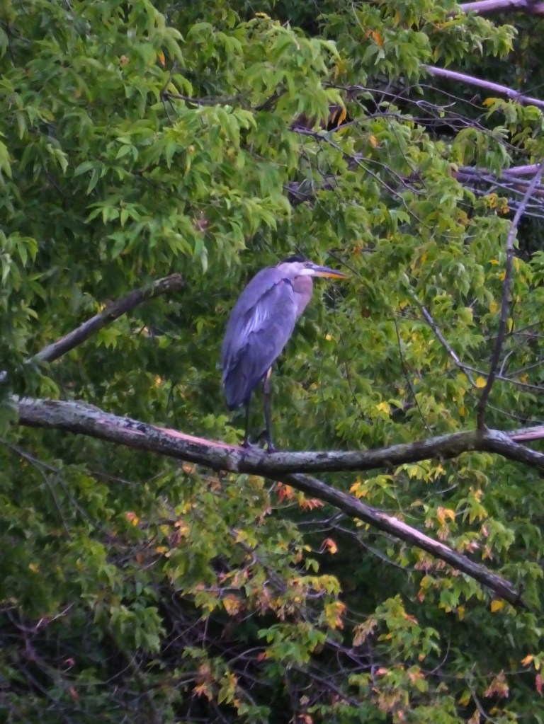 On the mudflats, the magnificent spotted orb-weaver from yesterday was gone, along with its web, but a blue heron was back to fishing along the river. I had initially written “I wonder how long they’ll stick around,” but then I looked up their migration map only to see that we might enjoy such sights all winter. All of Wisconsin is within their “year-round” range. Woo Hoo!