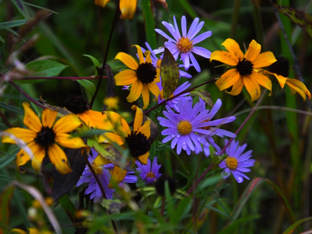 Pretty much the only thing I’ve got to show for walking up one side of the park and down the other is this picture of some pretty asters coming into bloom amongst some brown-eyed susans starting to fade.
