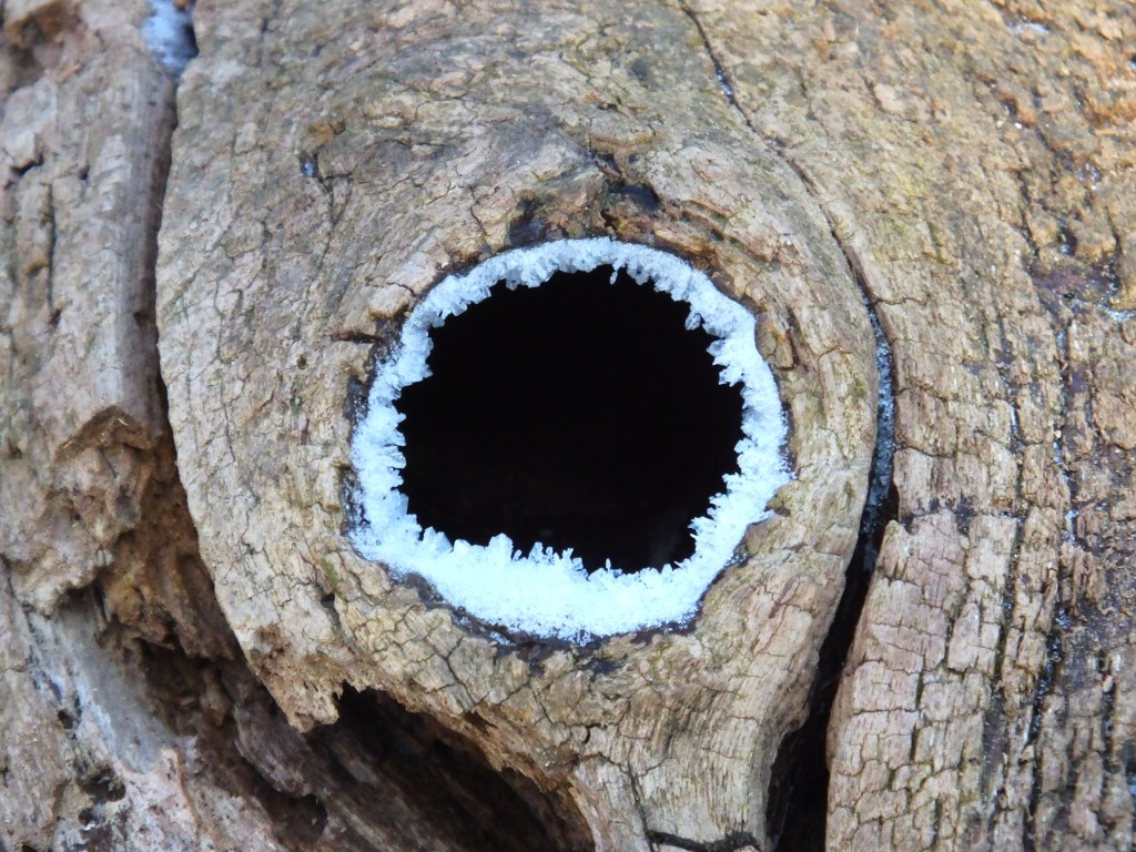 Meanwhile, back on shore, I noticed this fascinating little phenomenon. I wonder whose breath that is freezing around the entrance to their little den, eh? If you can figure out whether it is rime ice or hoarfrost, please let me know.