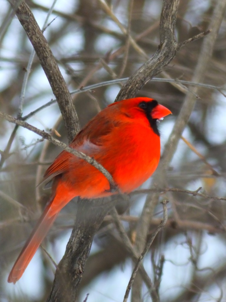 Finally, despite the current conditions, some of the male cardinals have already started to stake out their territory in song. This was not one of them, at the time, but he made a much nicer picture.