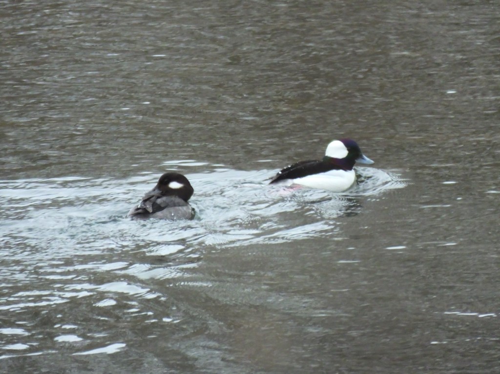 After all that excitement, I finally proceeded north and as happily surprised to find the bufflehead pair, whom we haven’t seen in days, back on the water, and just as shy as ever.