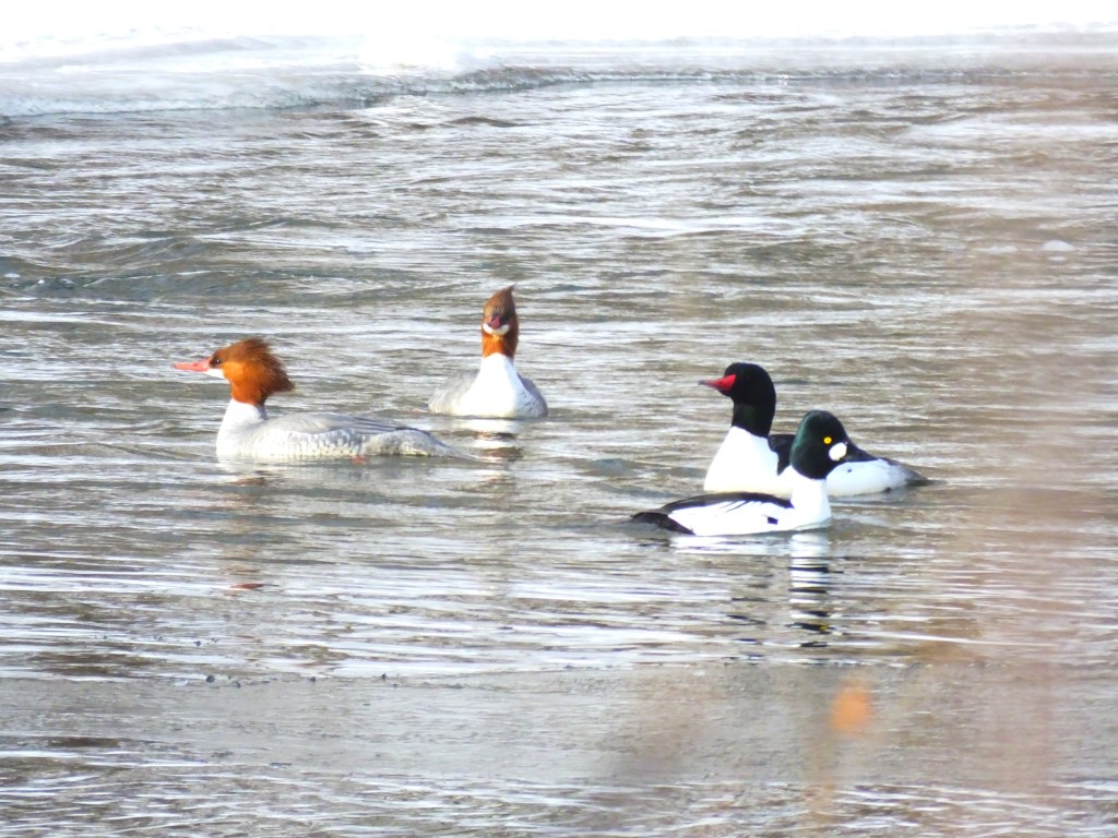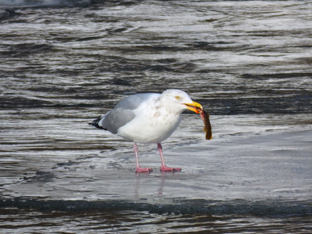 Here’s another herring gull trying to gulp down a little fish, and I wouldn’t be surprised to learn that it swiped it from this unhappy looking female common merganser again.