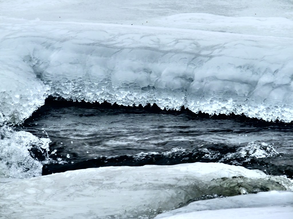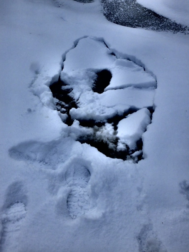 I also confirmed that the ice is indeed not safe. Ha! Sometimes science requires getting your feet wet, right? Luckily, that’s all it was, and the nice gaiters Carl got me worked surprisingly well to keep most of the water out. It pays to be quick, though.
